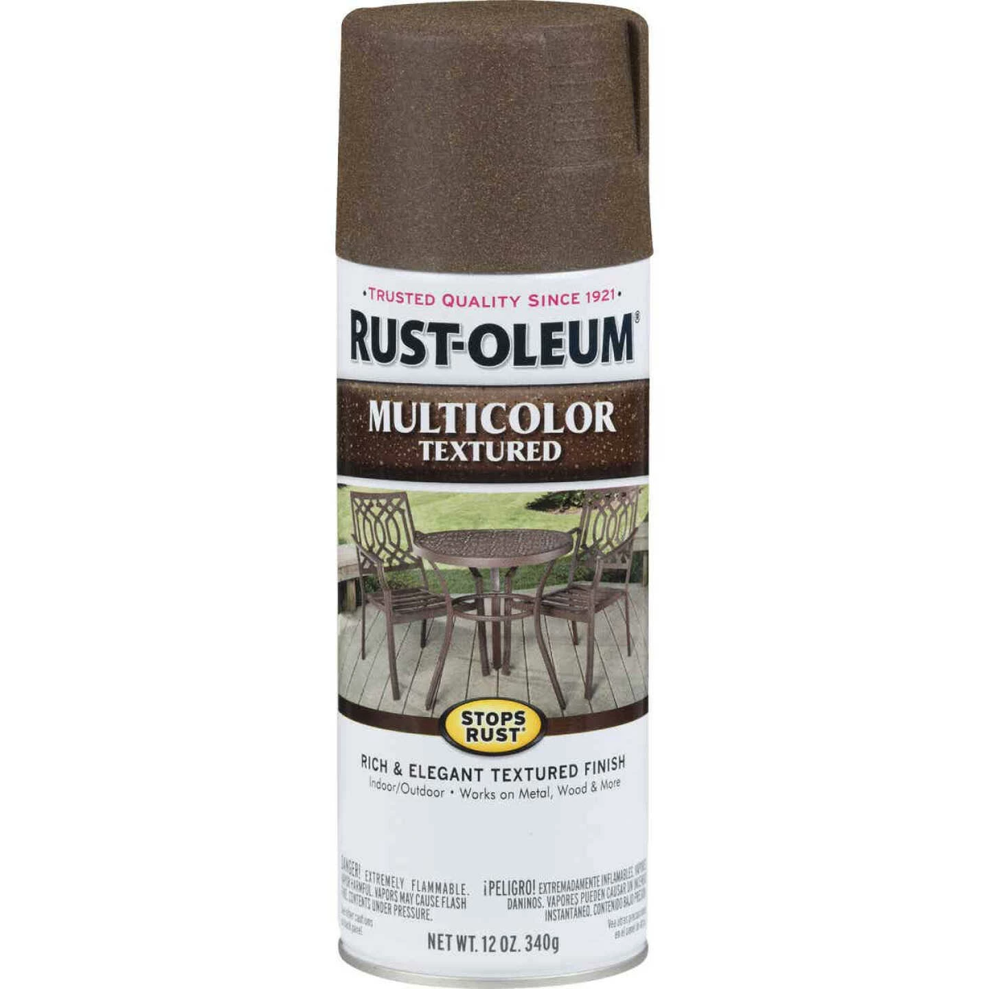 Create a premium, colorful textured finish on indoor or outdoor metal and wood surfaces. Apply outdoors or in well ventilated area. Do Not apply to galvanized metal. Stop rust primer is recommended for clean rusted surfaces before painting. Dries to touch in 30 minutes, to handle in 1 to 2 hours, and fully dry in 24 hours. 12 Oz. can covers approximately 25 Sq. Ft.