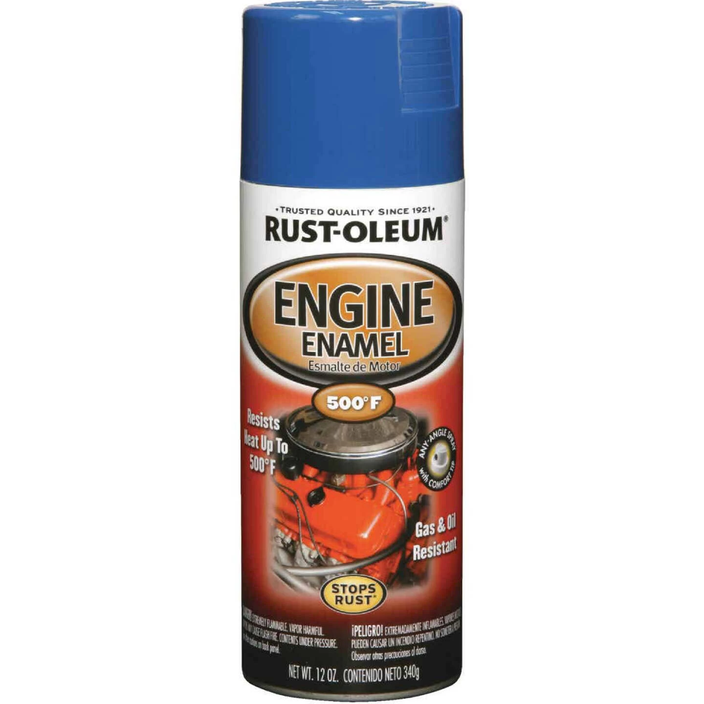Rust-Oleum engine enamel creates a smooth finish and is formulated for use on automotive engines and other automotive surfaces which reach intermittent temperatures up to 500 deg. F. (260 deg. C.). Product features: Resists heat up to 500 deg. F., gas and oil-resistant, Stops Rust formula, any-angle spray with comfort tip. 12 oz. spray can covers approximately 25 sq. ft.