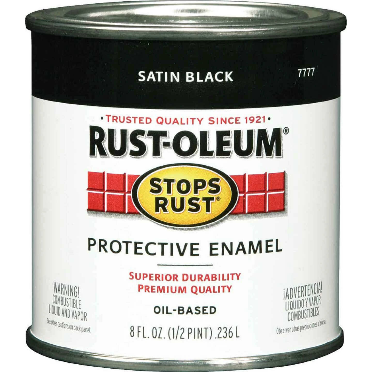 Rust-Oleum Stops Rust finishes are durable, tough, excellent hiding air dry finishes for interior or exterior protection of most metal, wood, or masonry surfaces. Rust-Oleum coatings resist weathering, salt air, moisture, mild chemicals, and industrial fumes. Prime metal surfaces with Rusty Metal Primer or White Clean Metal Primer. Rust-Oleum finishes cover up to 400 Sq. Ft. per gallon, dries to touch in 2 to 6 hours and to recoat after 24 hours. They may be applied with brush, roller, or spray. Thin sparingly for spray. If thinning is required, use paint thinner or mineral spirits. Clean up with paint thinner or mineral spirits. Gloss sheen except where specified. Available in flat, semi-gloss or satin.