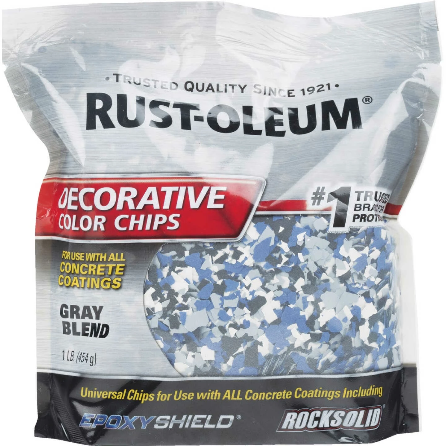 Rust-Oleum Decorative Color Chips is a special blend of vinyl chips designed specifically for use with garage floor coatings. Additional chips provide the opportunity to create an enhanced custom look for your coated concrete floor. Mix and match your own chip blend to your personal taste. Works on interior concrete floors including garage floors, workshops, basements, and more to create elegant granite, terrazzo looking surface.